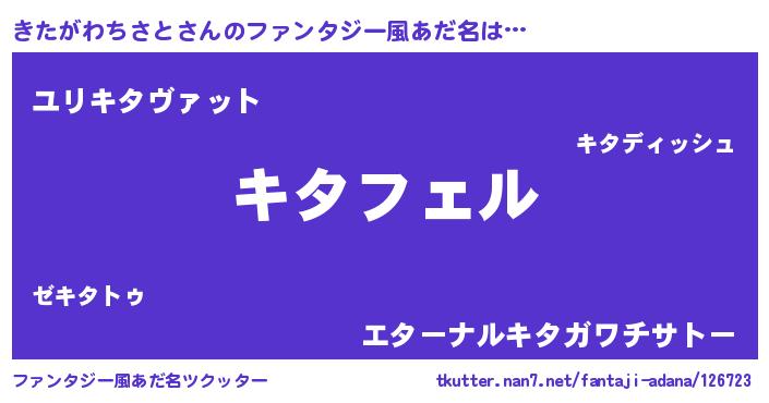 | 女子向けラノベタイトル風あだ名 | 『きたがわちさと姫と円卓の騎士』 |