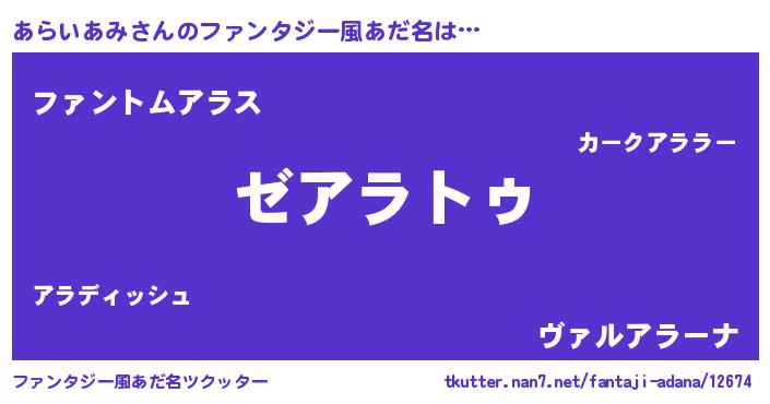| 男性向けラノベタイトル風あだ名 | 『Re:あらいあみから始める異世界生活』 |