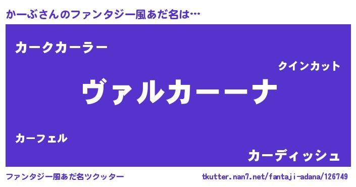 | 男性向けラノベタイトル風あだ名 | 『この素晴らしい世界にかーぶを!』 |