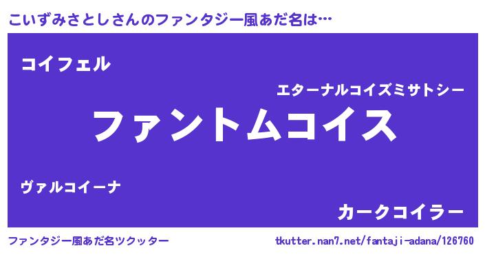 | 男性向けラノベタイトル風あだ名 | 『ダンジョンにこいずみさとしを求めるのは間違っているだろうか』 |