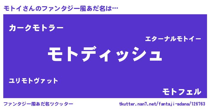 | 男性向けラノベタイトル風あだ名 | 『モトイという概念が存在しない退屈な世界 』 |