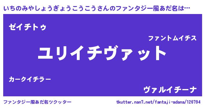 | 男性向けラノベタイトル風あだ名 | 『転生したらいちのみやしょうぎょうこうこうだった件』 |