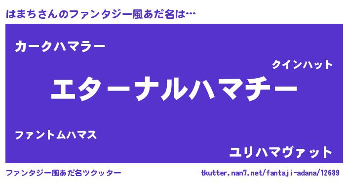 | 女子向けラノベタイトル風あだ名 | 『はまち伯爵の花嫁』『死神はまちの再婚』 |
