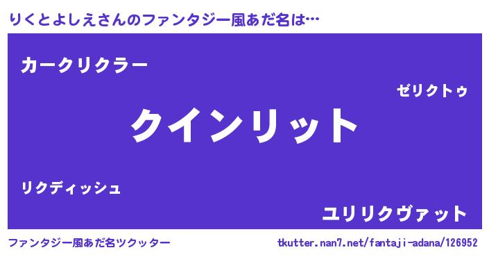| ヘコむあだ名 | 『りくとよしえ(笑)』『りくっふぃ~』 |