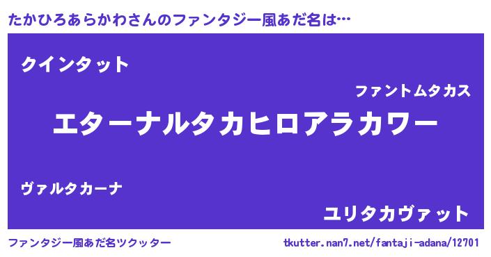| 意味不明あだ名 | 『たかひろあらかわフォーエバー』 |