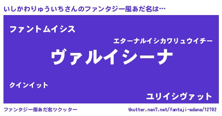 | 男性向けラノベタイトル風あだ名 | 『この素晴らしい世界にいしかわりゅういちを!』 |