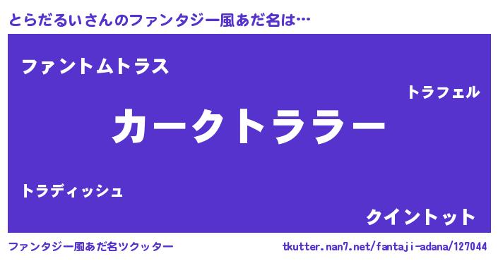 | 意味不明あだ名 | 『とにかく怪しいとらだるい』 |