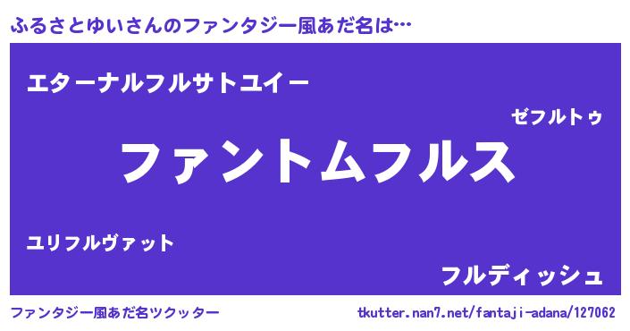 | 男性向けラノベタイトル風あだ名 | 『ふるさとゆいの嫁は女の子じゃないと思った?』 |