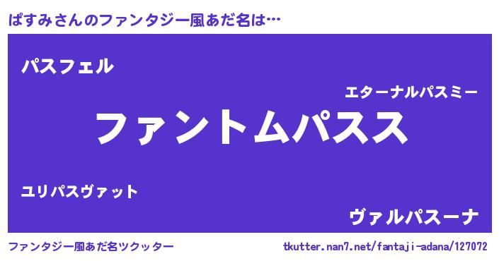 | 意味不明あだ名 | 『とにかく怪しいぱすみ』 |