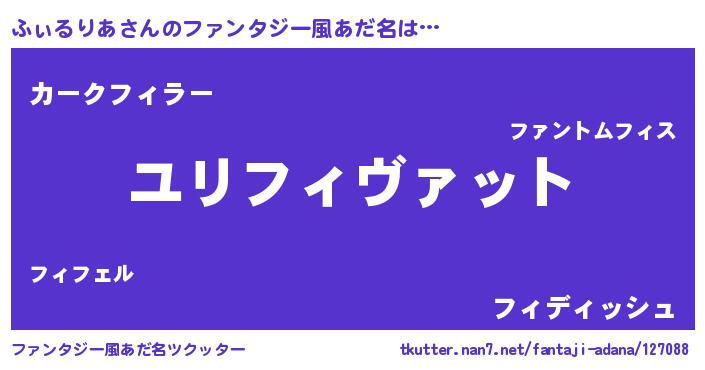 | ヘコむあだ名 | 『ふぃるりあ(笑)』『ふぃっ子』 |