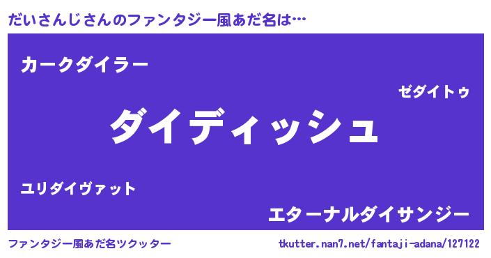 | 意味不明あだ名 | 『永久保存だいさんじ』『自称だいさんじ』 |