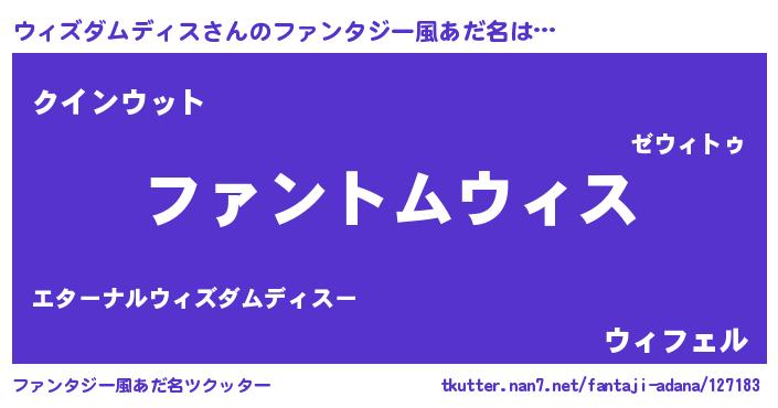 | 男性向けラノベタイトル風あだ名 | 『ウィズダムディスの嫁は女の子じゃないと思った?』 |