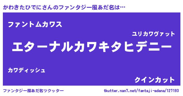 | ポケモン風あだ名 | 『カワキダネ』『ヒカワキタヒデニ』 |