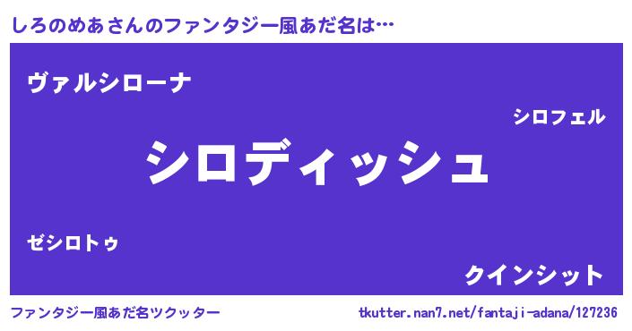 | 意味不明あだ名 | 『永久保存しろのめあ』『自称しろのめあ』 |