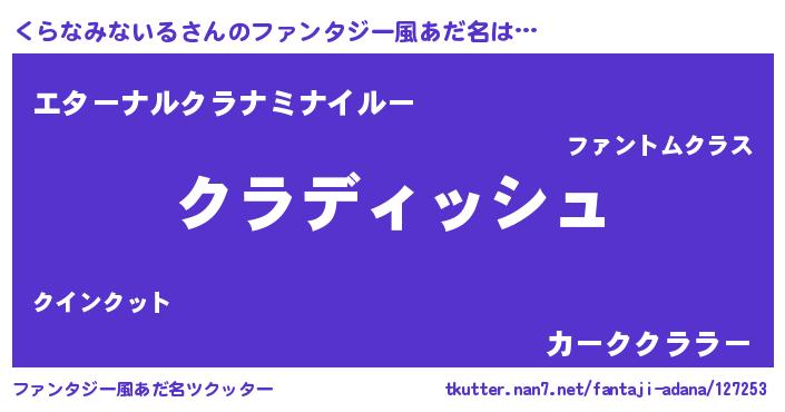 | ヒーロー風カッコイイあだ名 | 『ネオクラナミナイル』『天弓騎士クラ』 |