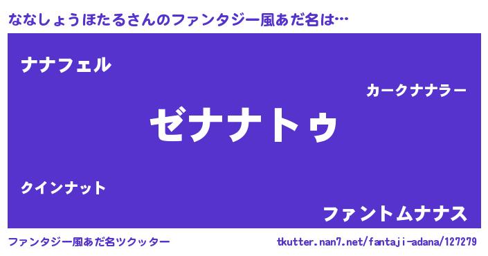 | 女子向けラノベタイトル風あだ名 | 『ななしょうほたるなんてお断りですっ。』 |