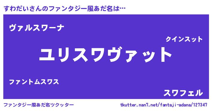| ヒーロー風カッコイイあだ名 | 『仮面スワダー』『スーパースワダイ』 |