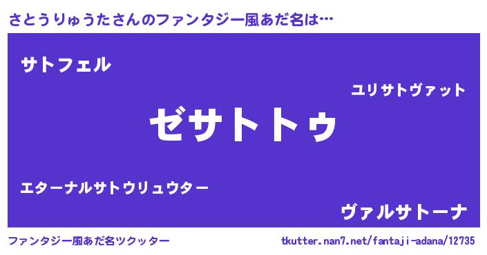 | 男性向けラノベタイトル風あだ名 | 『魔法科高校のさとうりゅうた』 |