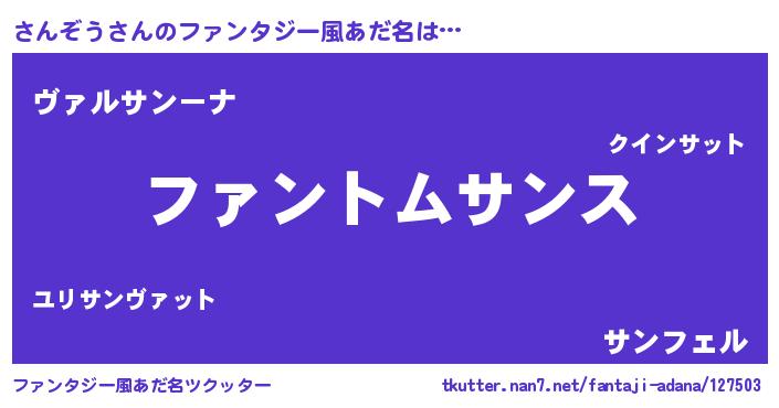 | ヘコむあだ名 | 『さん太郎』『さんふぇ~』 |