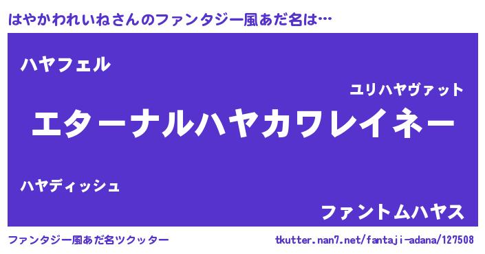 | 伝説のあだ名 | 『最強の陰陽師はやかわれいね』 |
