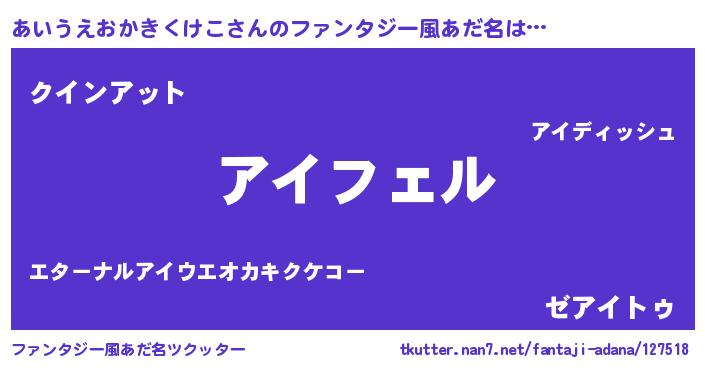 | 伝説のあだ名 | 『不死鳥の竜騎士あいうえおかきくけこ』 |