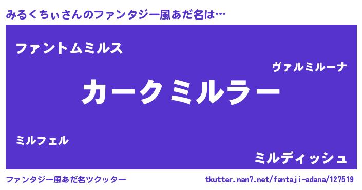 | 意味不明あだ名 | 『とにかく怪しいみるくちぃ』 |