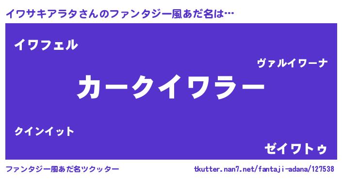 | 男性向けラノベタイトル風あだ名 | 『緋弾のイワサキアラタ』 |