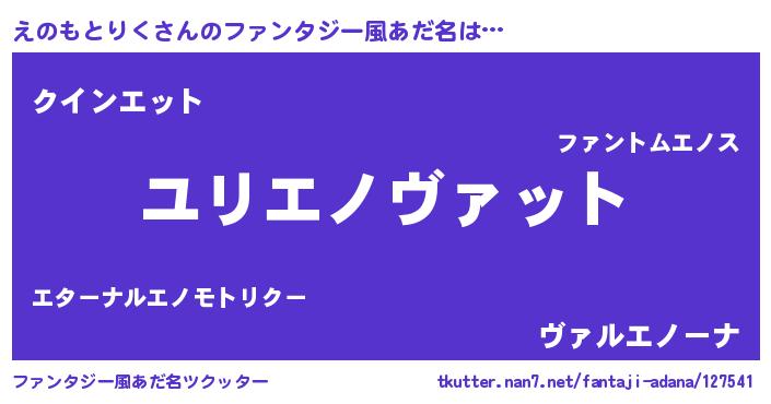 | 男性向けラノベタイトル風あだ名 | 『転生したらえのもとりくだった件』 |