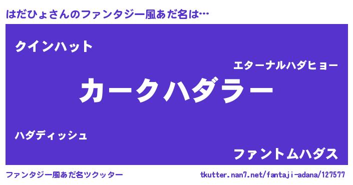 | ヒーロー風カッコイイあだ名 | 『天空の使者はだひょ』『幻影騎士ハダ』 |