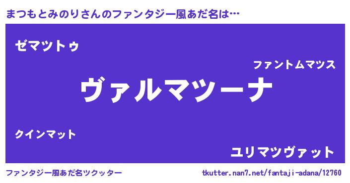 | 男性向けラノベタイトル風あだ名 | 『この素晴らしい世界にまつもとみのりを!』 |