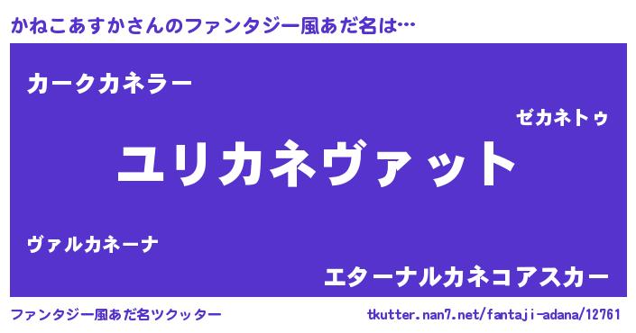 | 料理風あだ名 | 『かねこあすかごはん』 |