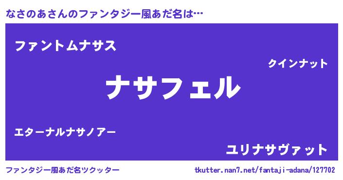| 男性向けラノベタイトル風あだ名 | 『ナサノアアートオンライン』 |