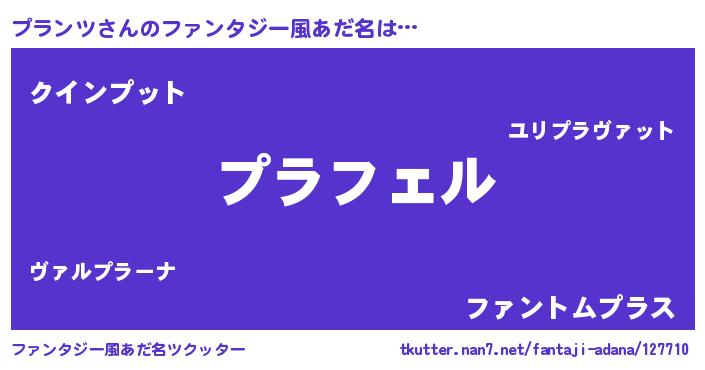 | ヘコむあだ名 | 『プラふぇ~』『プラ太郎』 |