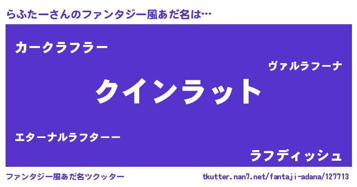 | ヘコむあだ名 | 『らふたー(爆)』『豆乳』『らふお』 |