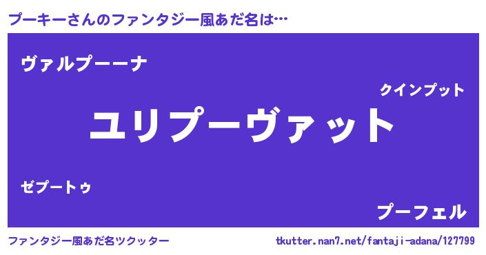 | 意味不明あだ名 | 『なめこ科プーキー属』『自称プーキー』 |
