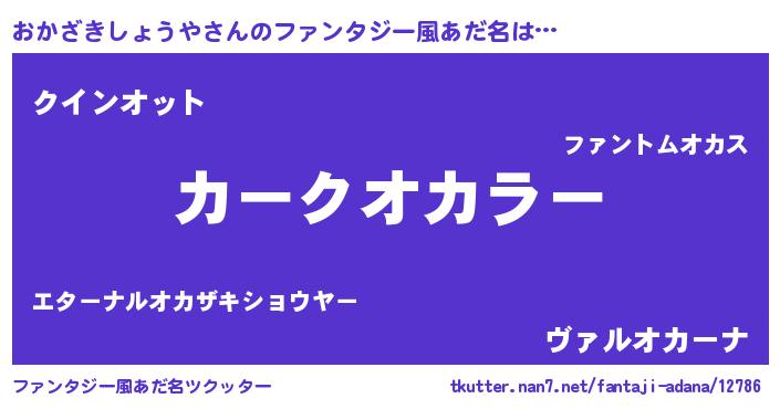 | 女子向けラノベタイトル風あだ名 | 『シンデレラおかざきしょうや家の靴箱館』 |