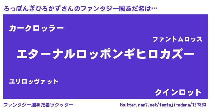| 意味不明あだ名 | 『ろっぽんぎひろかずフォーエバー』 |