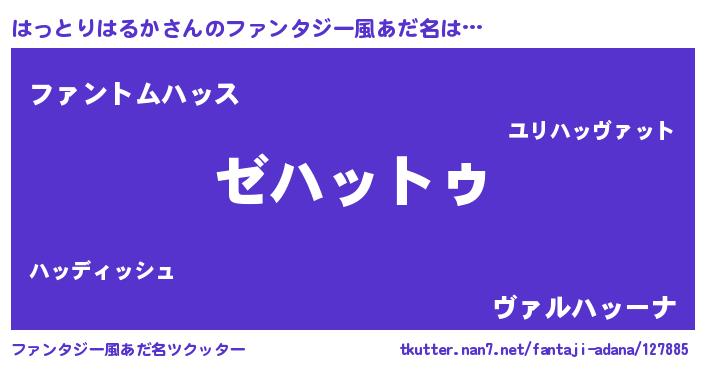 | ポケモン風あだ名 | 『ハッセウス』『ヒハットリハルカ』 |