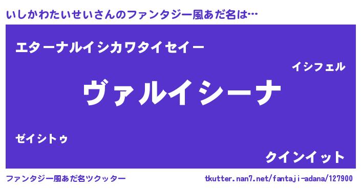 | 女子向けラノベタイトル風あだ名 | 『いしかわたいせいが死なない童話 林檎のいしかわたいせいの診療簿』 |