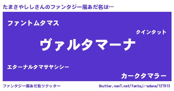 | ポケモン風あだ名 | 『ターマイ』『ヒタマサヤシシ』 |