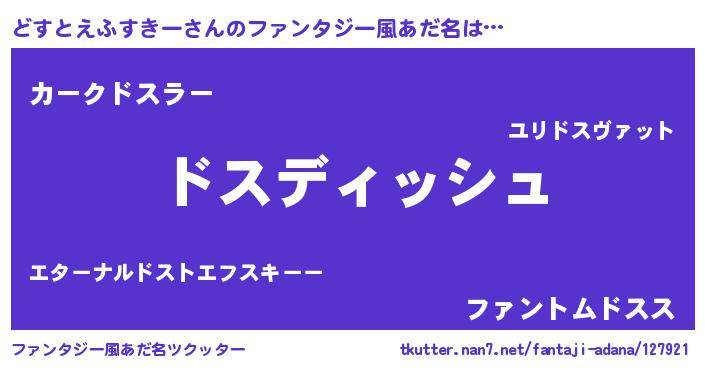 | 女子向けラノベタイトル風あだ名 | 『異世界でカフェどすとえふすきーを開店しました。』 |