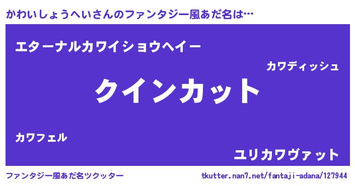 | 男性向けラノベタイトル風あだ名 | 『ノーゲーム・ノーカワイショウヘイ』 |