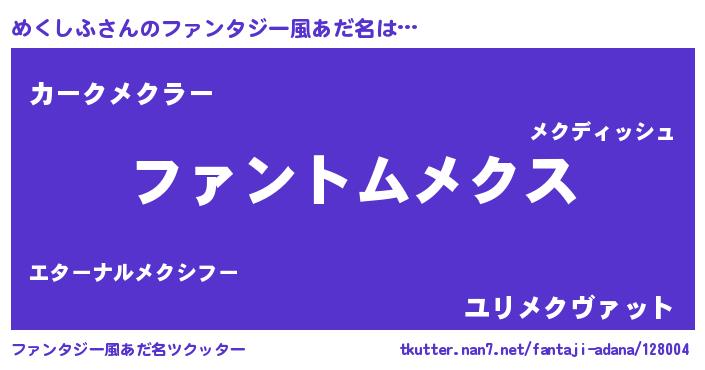 | 男性向けラノベタイトル風あだ名 | 『めくしふの嫁は女の子じゃないと思った?』 |