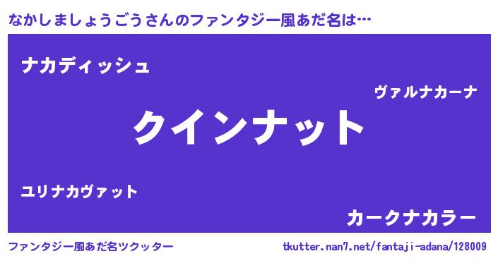 | ヘコむあだ名 | 『なかしましょうごう(笑)』『なかっぺ』 |