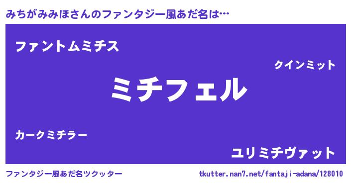 | 欧米人風あだ名 | 『マイケルみちがみみほ』 |