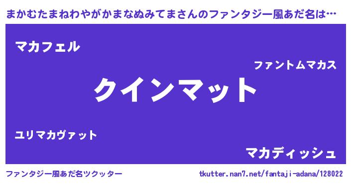 まかむたまねわやがかまなぬみてまさんのファンタジー風あだ名をツクッター!