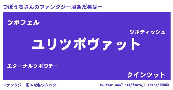 | 女子向けラノベタイトル風あだ名 | 『つぼうちの玉の輿計画!』 |