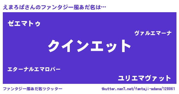 | 欧米人風あだ名 | 『ダニエルえまろば』 |