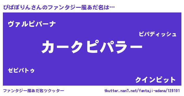 | 男性向けラノベタイトル風あだ名 | 『うちのぴぱぽりんが世界を掌握している!』 |