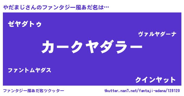 やだまじさんのファンタジー風あだ名をツクッター!
